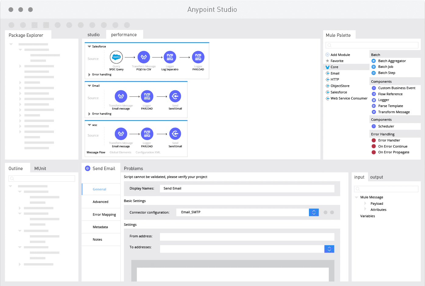 Herramienta que permite la creación de aplicaciones mule mediante una interfaz drag and drop en la que iremos arrastrando y soltando los diferentes componentes que conforman una integración. El propósito de la herramienta Flow Designer, es la posibilidad de crear aplicaciones totalmente funcionales por usuarios sin conocimientos técnicos.